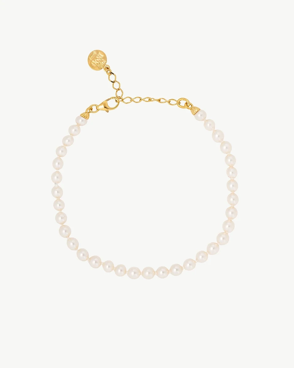 Ballet collection bracelet in 18k gold-plated silver featuring 4mm round white pearls. A timeless piece of elegance. Discover more in our boutique.