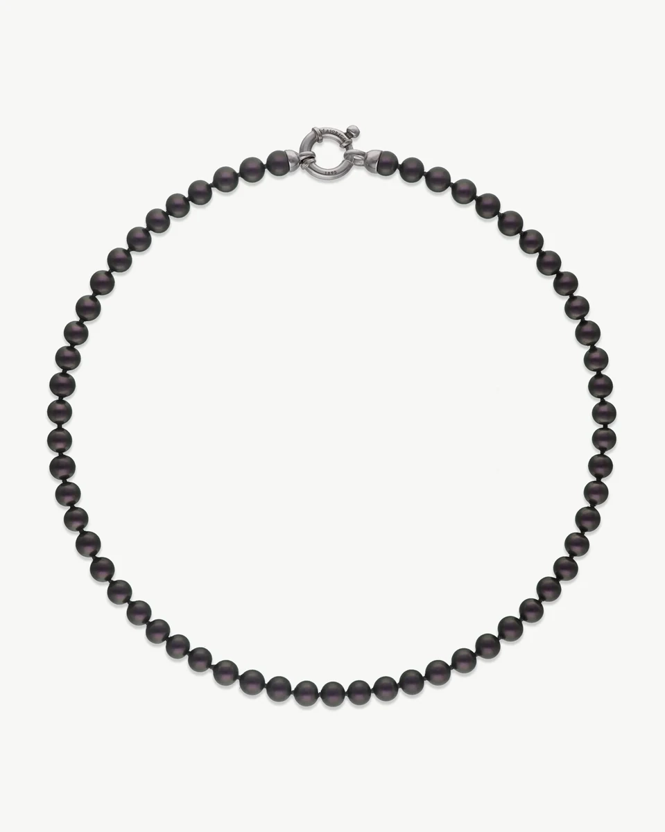 Sophisticated Grace collection necklace crafted in rhodium-plated silver. Featuring a continuous strand of 6mm round Tahiti pearls with a 40cm length. This piece captures the timeless essence of Grace Kelly's style, offering an unparalleled blend of simplicity and high elegance. Elevate your jewelry collection with this exquisite pearl strand.