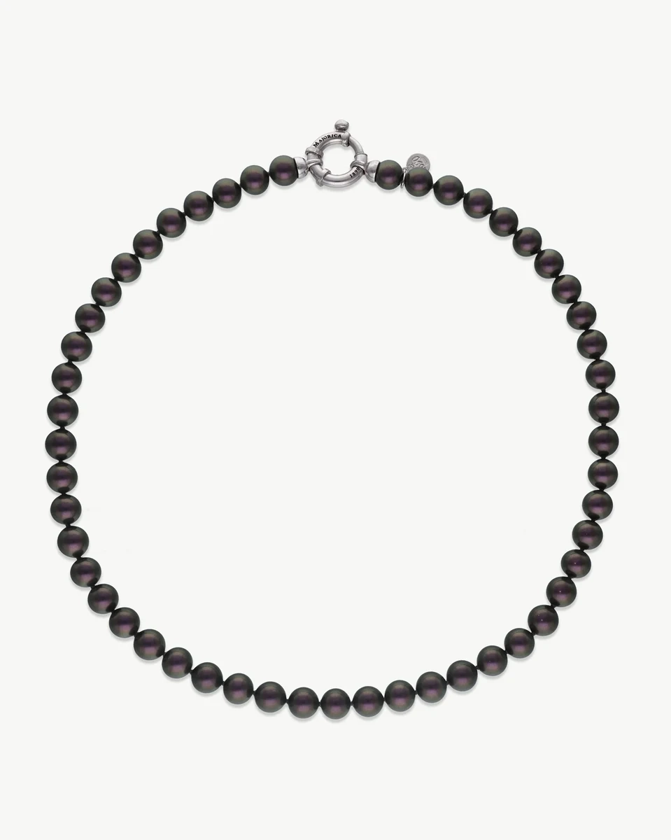 Grace collection necklace featuring 8mm round Tahiti pearls on rhodium-plated silver, 45cm length. Timeless sophistication for elegant occasions. Discover more.