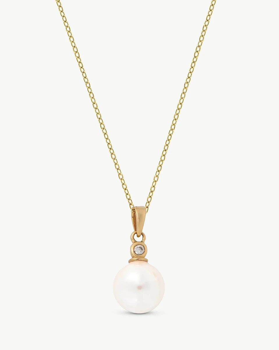 Élégant pendent avec chaîne en or jaune 18k, orné d'une perle blanche ronde de 10 mm et d'un diamant de laboratoire de 2 mm. Cette pièce marie la douceur nacrée à l'éclat du diamant pour un style raffiné et intemporel. Laissez-vous séduire par ce chef-d'œuvre de délicatesse.